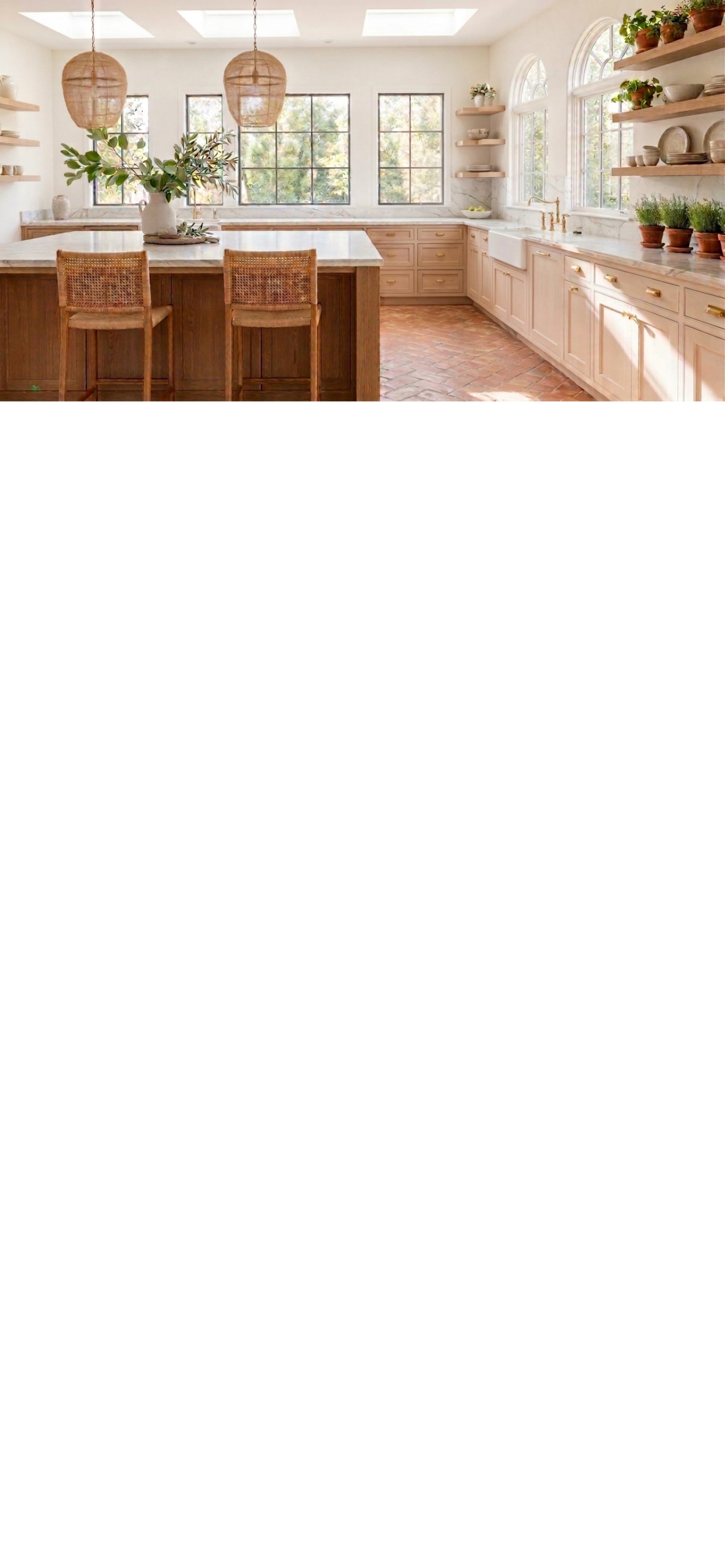 AI_IMAGE: A bright Mediterranean living room interior with whitewashed walls, terracotta floor tiles, an arched doorway revealing a sunlit terrace, fresh flowers on a rustic wooden table, linen curtains gently blowing, warm golden light streaming in, staging and real estate photography feel | photorealistic | landscape